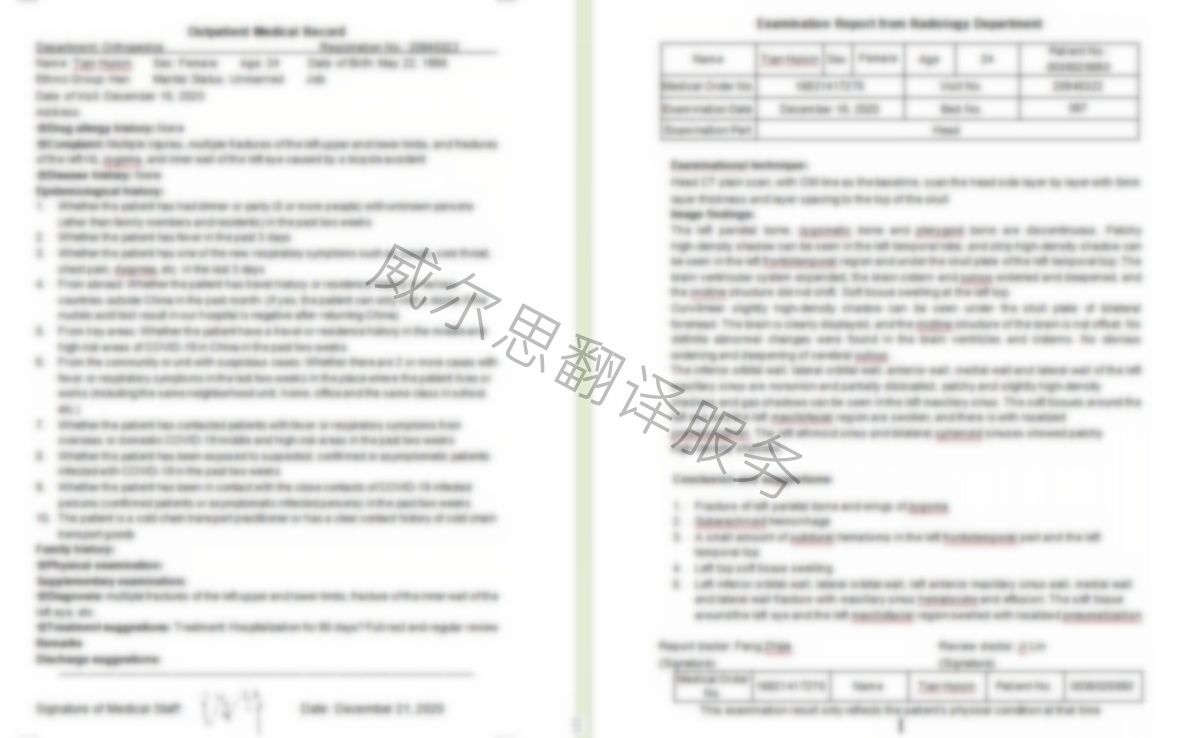 醫學檢查單&診斷書&住院記錄翻譯樣本